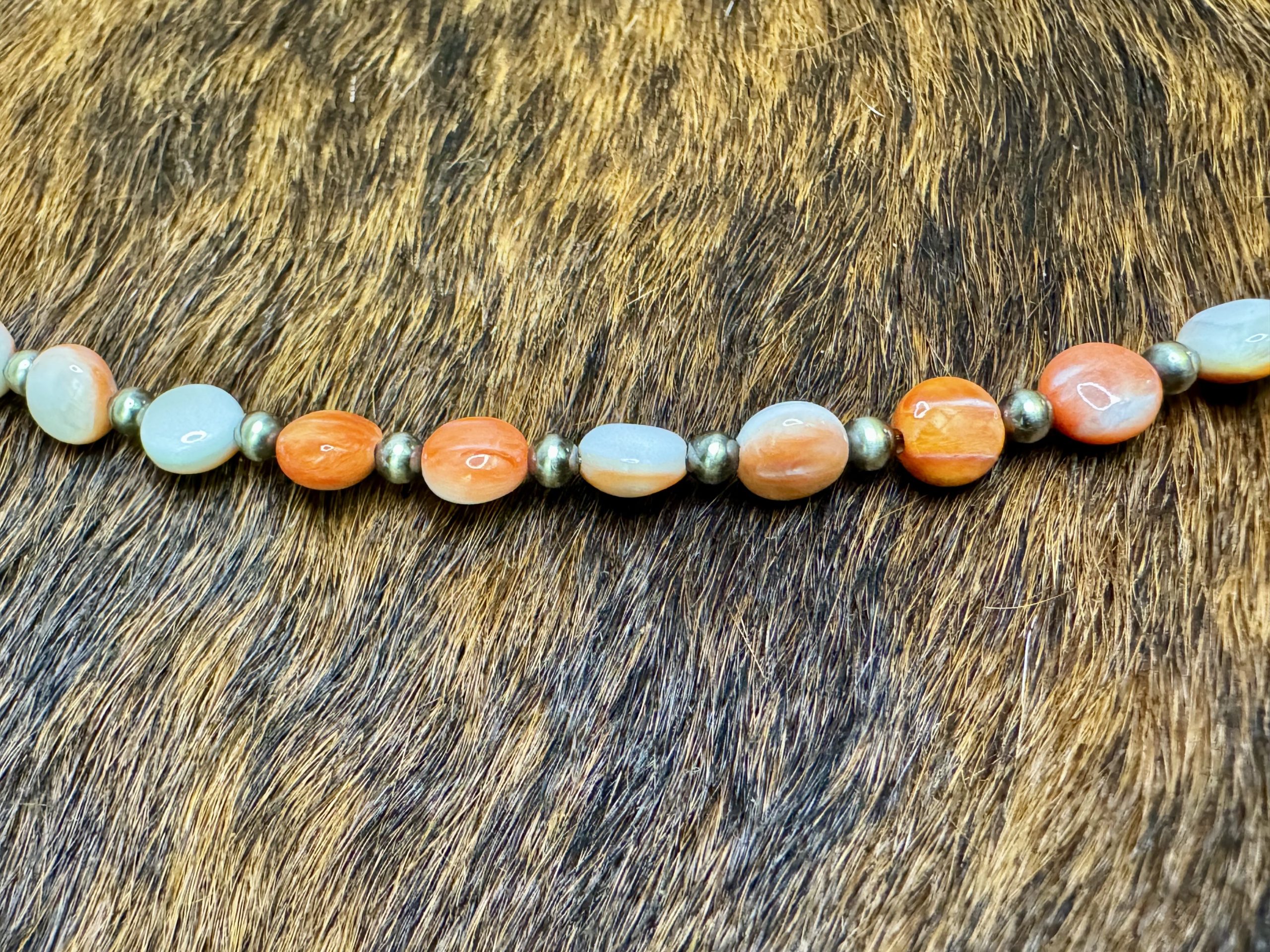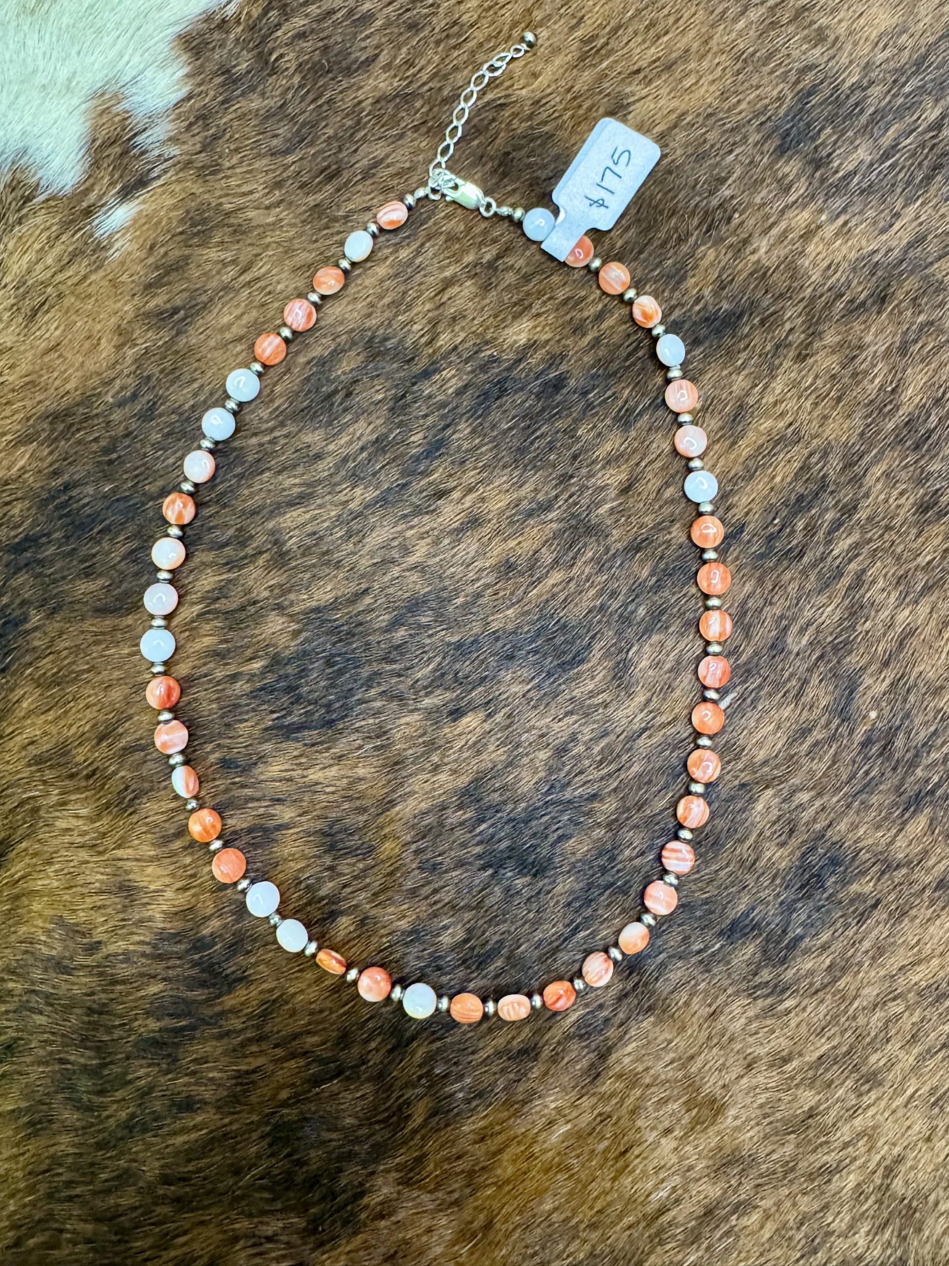 This 15″ necklace, with 2″ extender, was made by Kathy Edwards. For more info please call 806-587-0417.