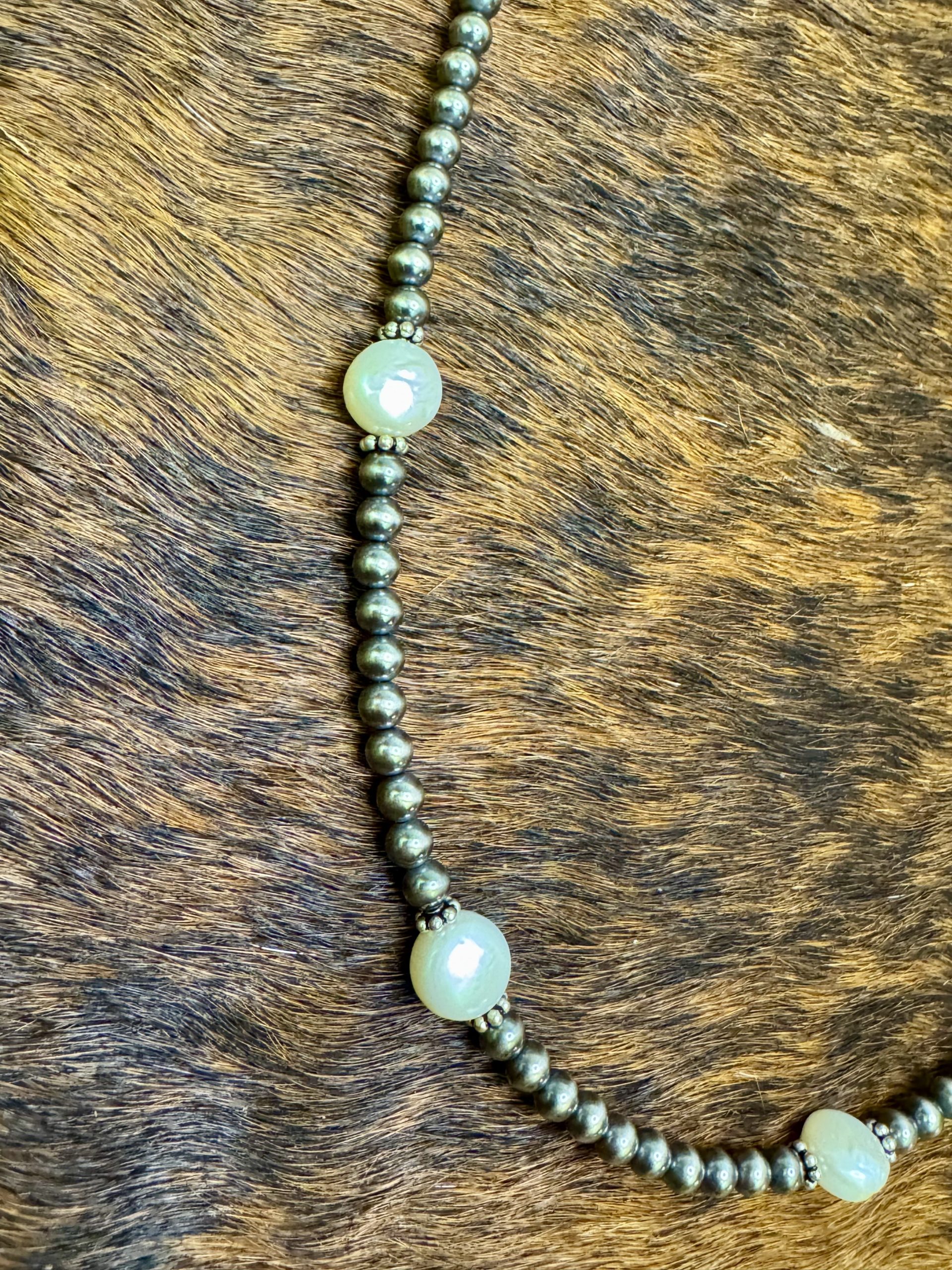 This 23″ necklace, with 2″ extender, was made by Kathy Edwards. For more info please call 806-587-0417.