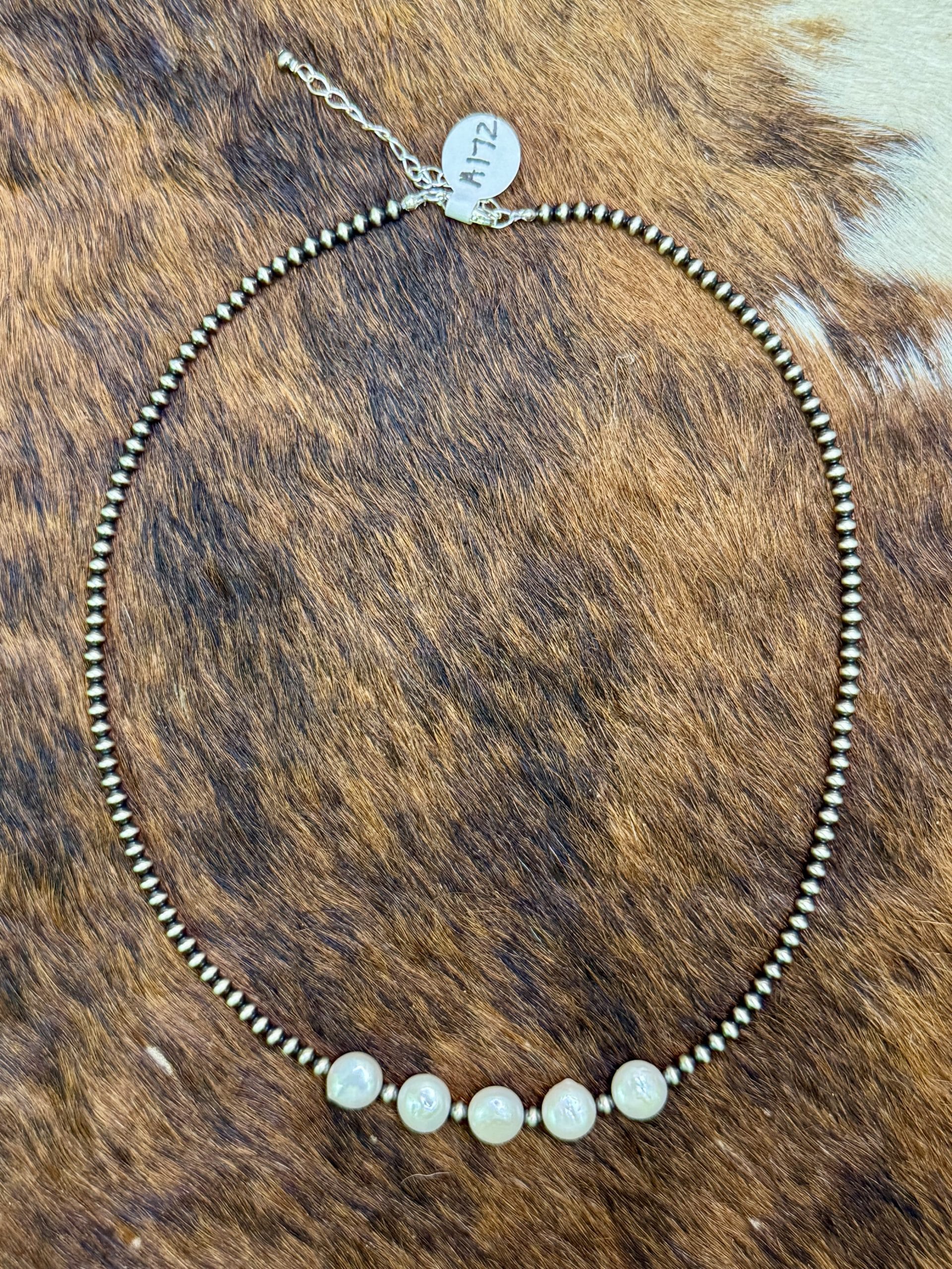 This 16″ necklace, with chain extender, was made by Kathy Edwards. For more info please call 806-587-0417.