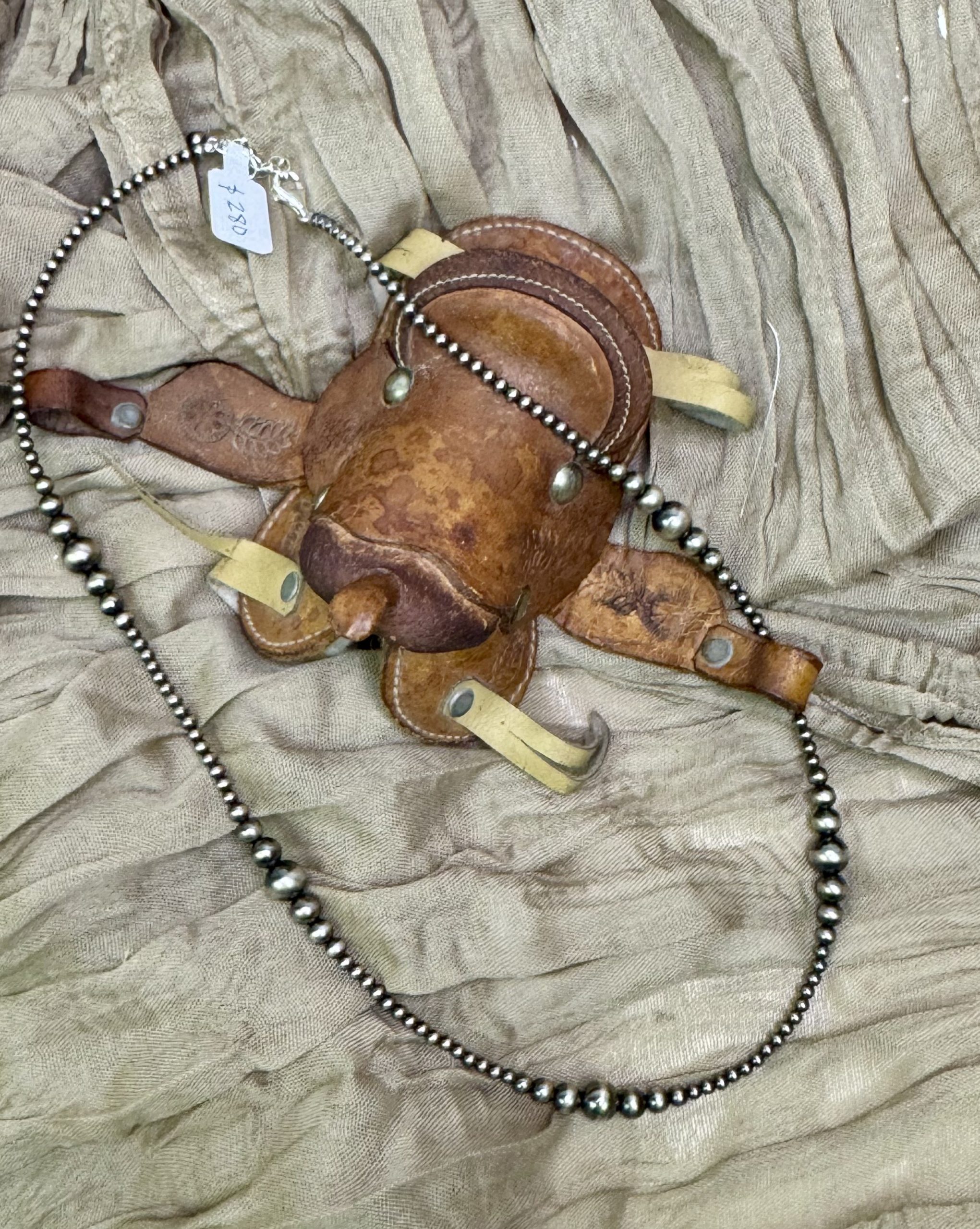 This 20″ necklace, with 2″ extender, was made by Kathy Edwards. For more info please call 806-587-0417.