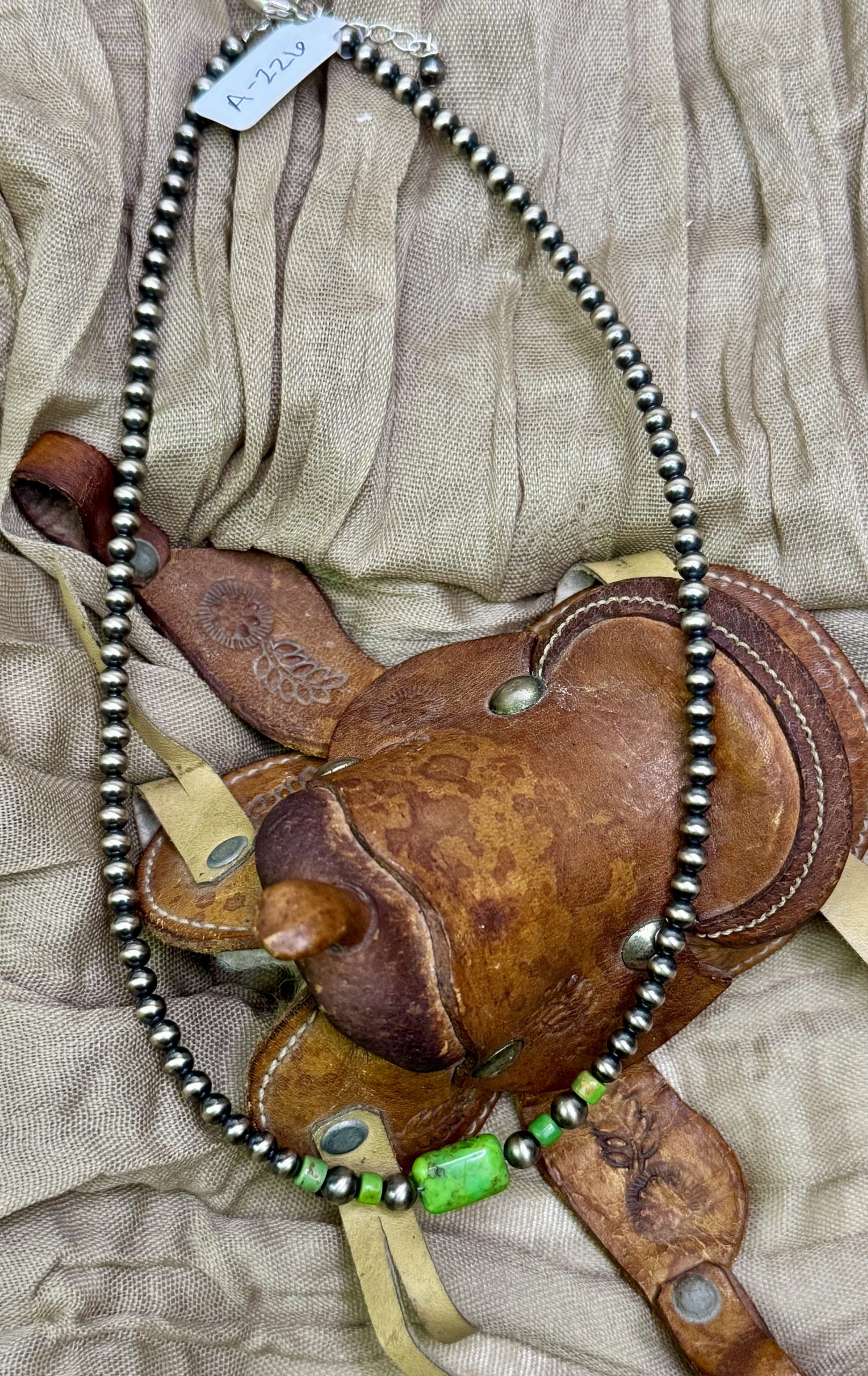 This 15″ necklace, with 2″ extender, was made by Kathy Edwards. For more info please call 806-587-0417.