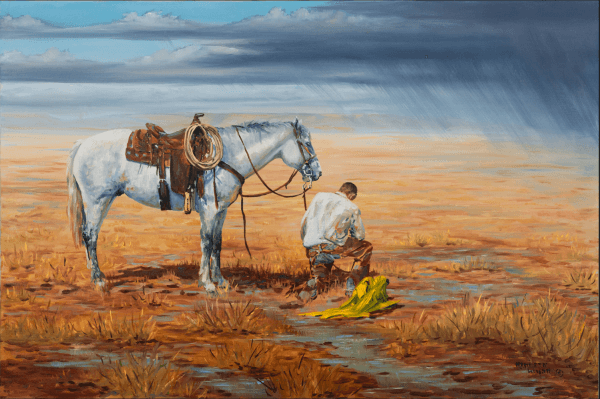 This original oil by Kenneth Wyatt measures 24×36 and is $9,000 $8,100.