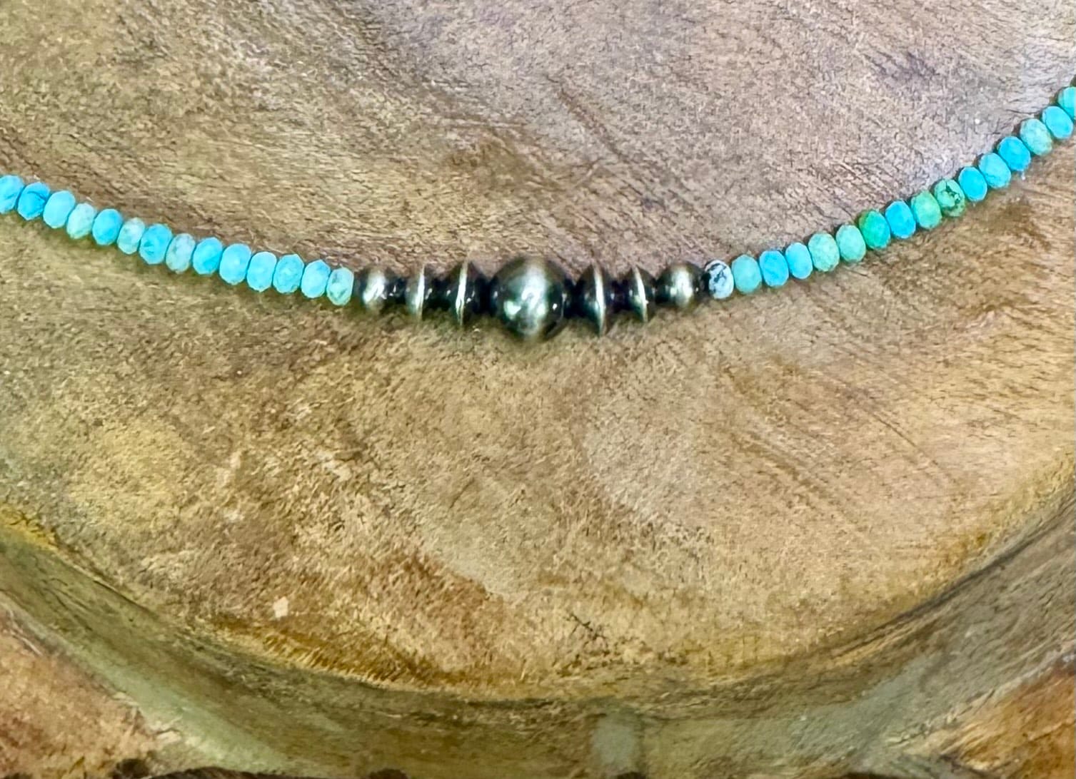 This 16″ necklace, with chain extender, was made by Kathy Edwards.  For more info please call 806-587-0417.