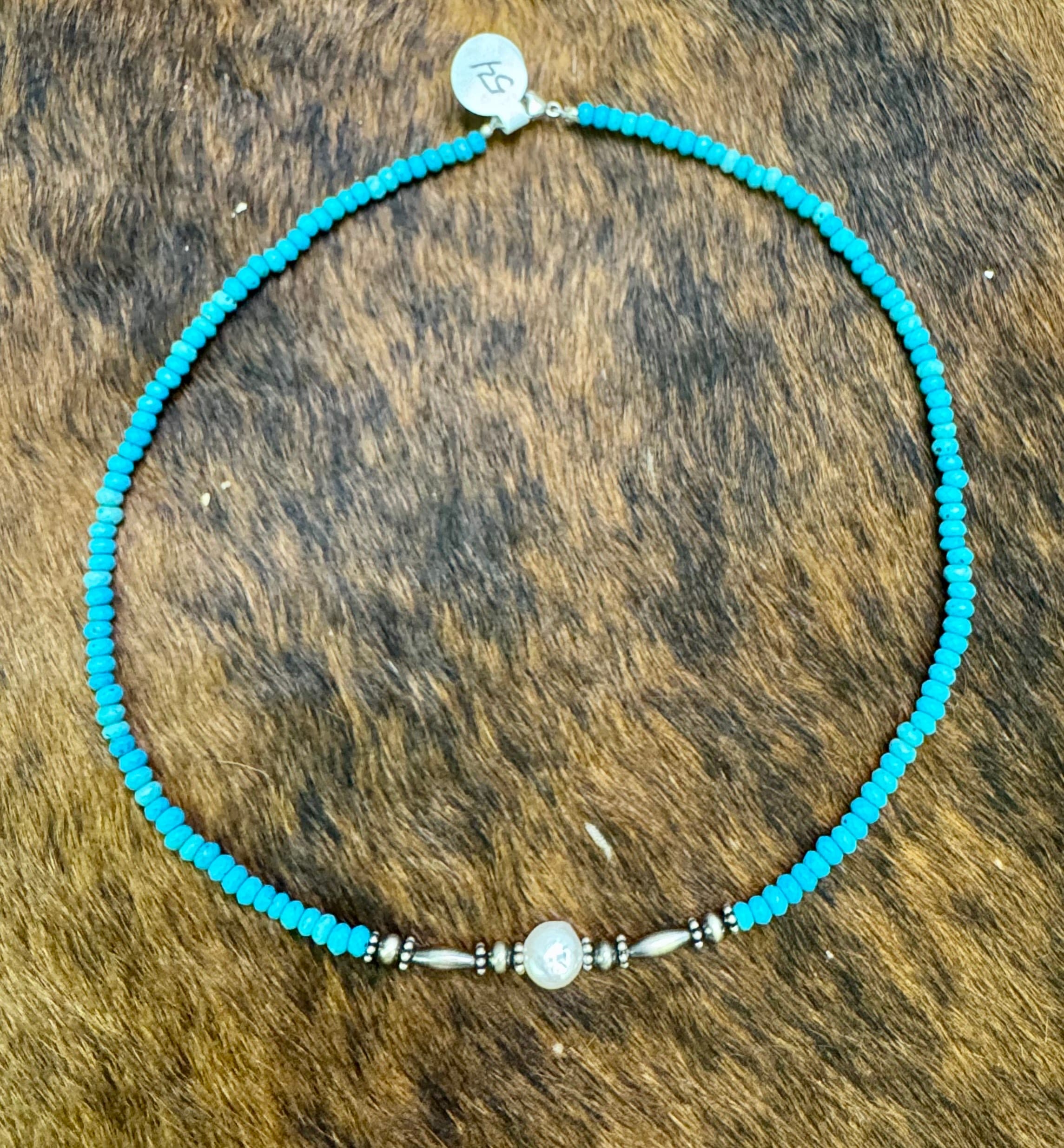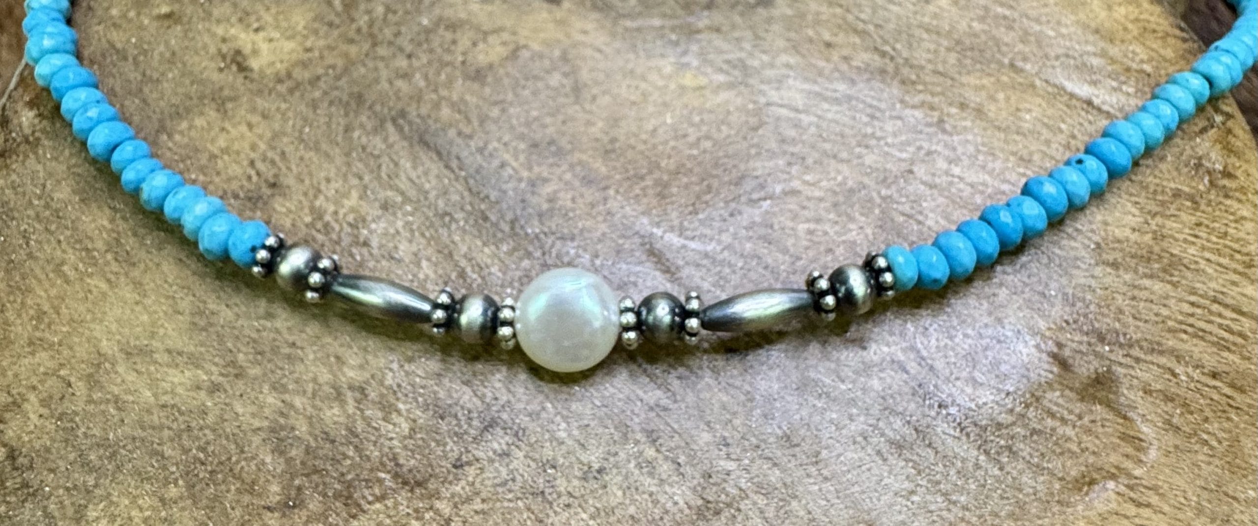 This 16″ necklace was made by Kathy Edwards. For more info please call 806-587-0417.
