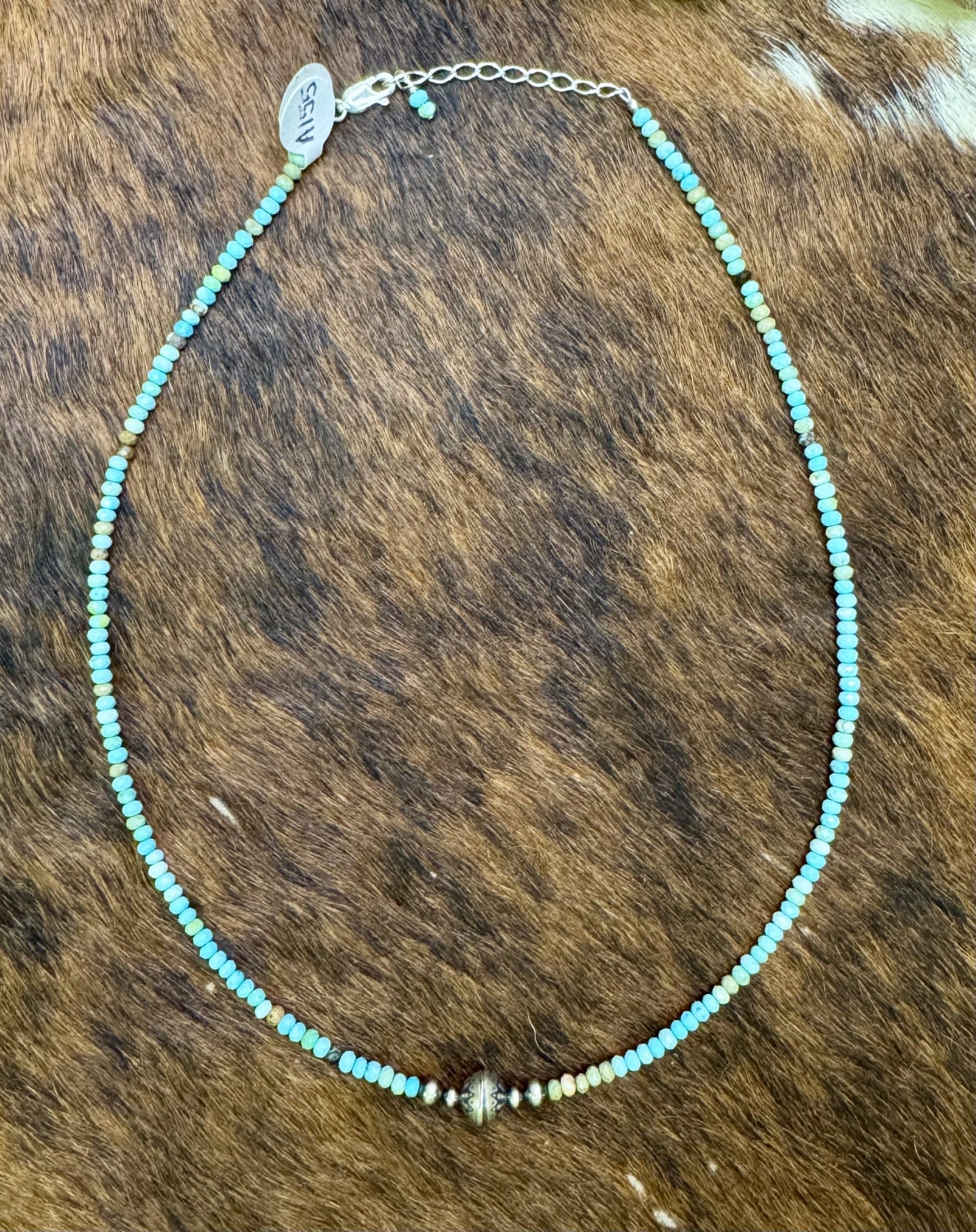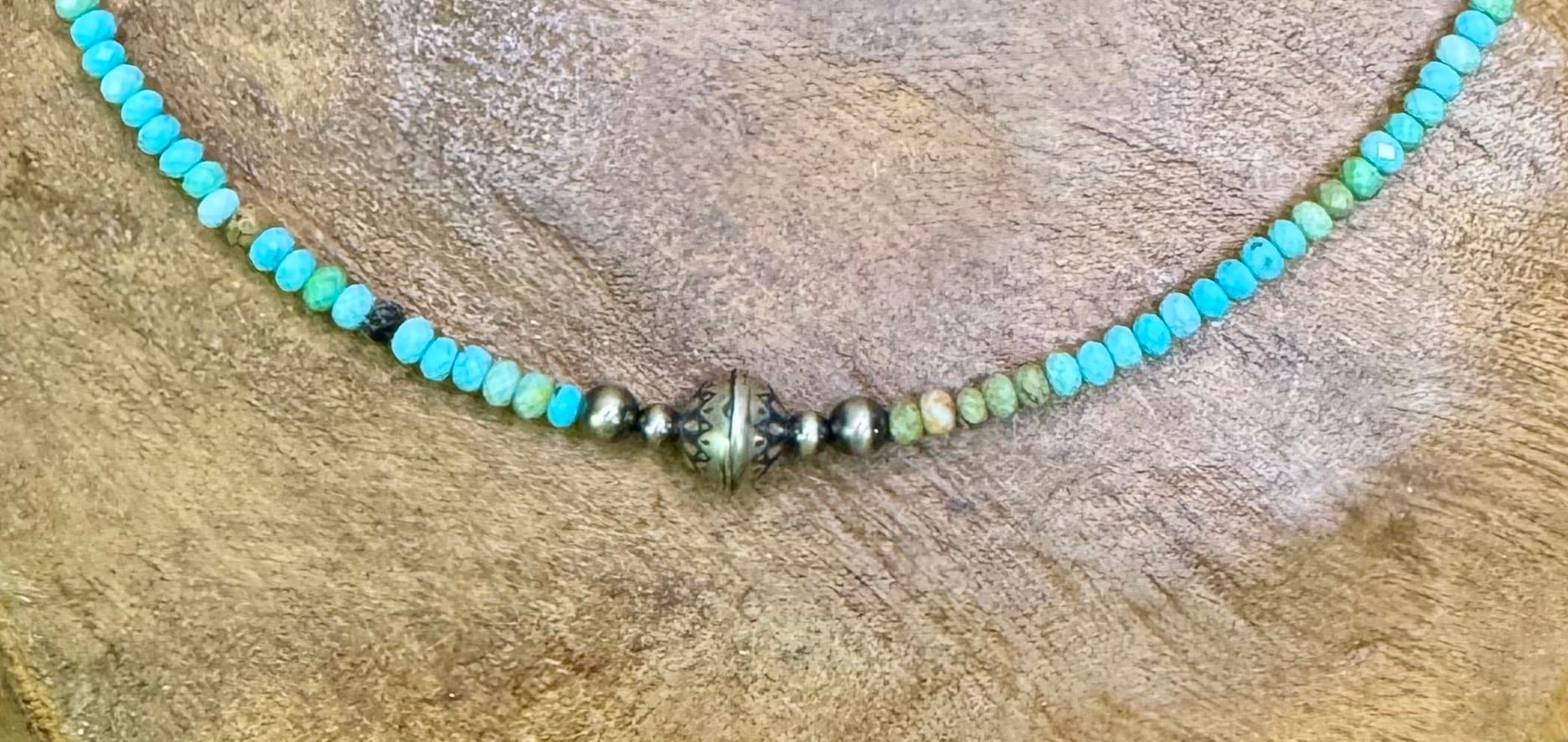 This 16″ necklace, with chain extender, was made by Kathy Edwards. For more info please call 806-587-0417.