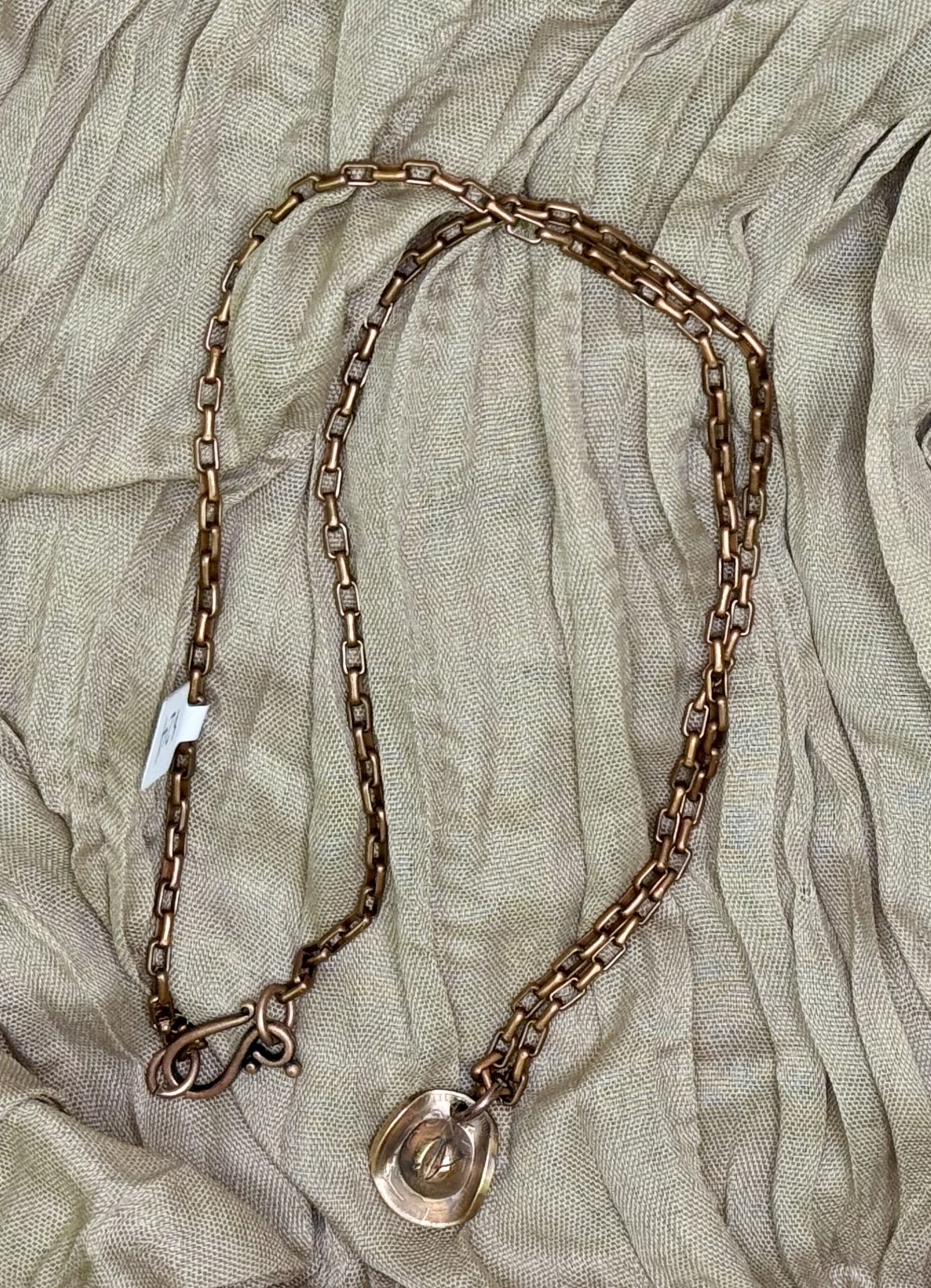 This 25″ copper necklace was made by Lynnetta Mooney. For more info please call 806-587-0417.